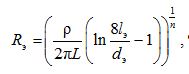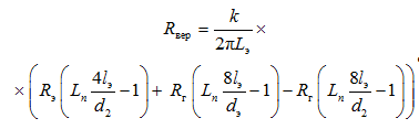 Запишем уравнения для вертикального электролитического заземлителя [8]:
