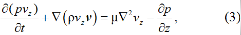 where vx, vy, vz – the components of the velocity vector v along the x, y, z directions, respectively; μ – the dynamic viscosity of water.