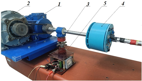 Fig. 2. Components: 1 – electric motor; 2 – load generator; 3 – shaft;