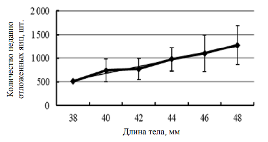 Fig. 6. Initial one-time realized fecundity of P. adspersus of the Karkinit Bay, May 2017