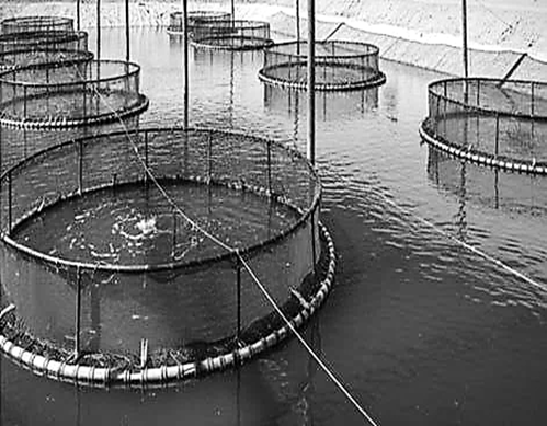 Рис. 2. Затеняющие сетки над садками для снижения температуры воды