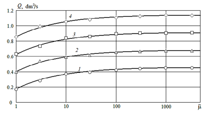 Можно отметить, что подача КН растет с увеличением небольших значений КДВ, но при μ > 1 Па·с