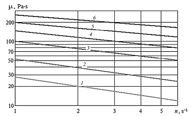 Полуфабрикаты из рыбного фарша с различными добавками имеют реологические свойства неньютоновских жидкостей, их эффективная динамическая вязкость (ЭДВ) зависит не только от состава, температуры, степени измельчения, но и от скорости сдвига ω, которая определяется ЧВР КН (ω ≈ 2πn). Необходимо подобрать модель, описывающую реологическое поведение ПРФД. Этой проблеме посвящено большое количество научных публикаций [15–21].