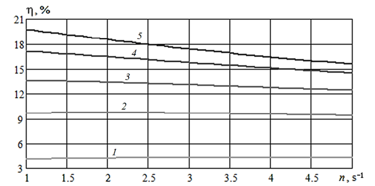 Fig. 7. Results of calculation according to formula (6) of the dependence of the of the hydraulic efficiency of 034-WCB