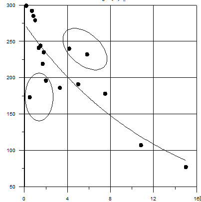 ln(V) = 0,054 · X + 1,696 или V = exp(0,054 · X) · 5,455 Среднее X = 3,71 Среднее ln(V) = 1,89 Остаточная сумма квадратов = 0,021 Сумма квадратов, обусловленных моделью = 0,775 Коэффициент детерминации R2 = 0,97 |