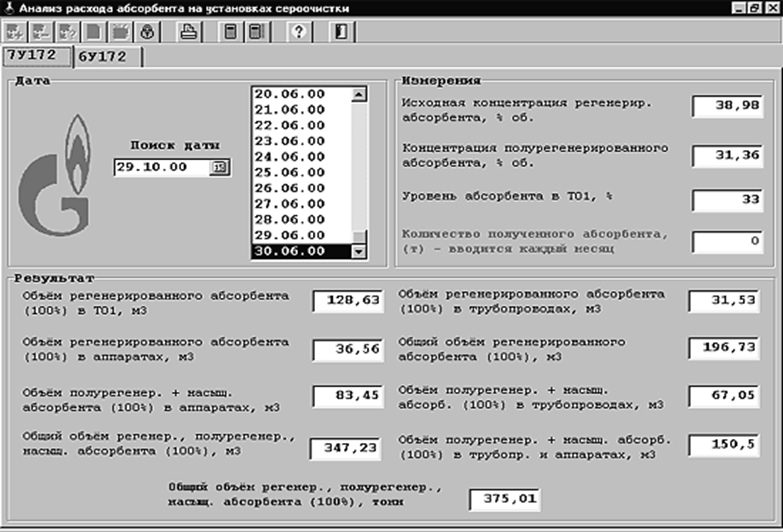 Рис. 4. Интерфейс программы «Анализ расхода абсорбента на установках сероочистки»