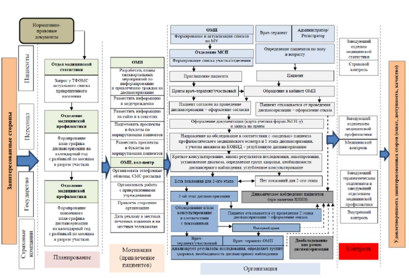 Рис. 2. Структура контроля процесса диспансеризации населения по видам, ответственным лицам и функциям