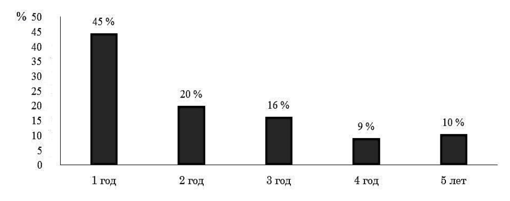 3. Длительный период окупаемости. Более 64 % налоговых расходов окупается в первые два года действия соответствующих налоговых льгот: совокупный бюджетный эффект приобретает положительное значение (рис. 2). Таким образом, пятилетний горизонт планирования и максимальный критерий выхода на окупаемость льготы является вполне реалистичным.