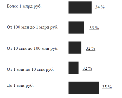 1. Объем налоговой льготы. Предоставление льготы, обусловливающей налоговые расходы, в объеме выпадающих доходов либо до 1 млн руб., либо более 1 млрд руб., т. е. малые и крупные объемы. На данную категорию налоговых расходов приходится более 17 % общего объема выпадающих налоговых доходов. В целом распределение налоговых расходов, имеющих положительный совокупный бюджетный эффект, в зависимости от объема льготы имеет приблизительно равномерное распределение. Но у категорий налоговых расходов с объемом выпадающих налоговых доходов до 1 млн руб. и более 1 млрд руб. более высокий удельный вес, обеспечивающий положительный совокупный бюджетный эффект (рис. 3).