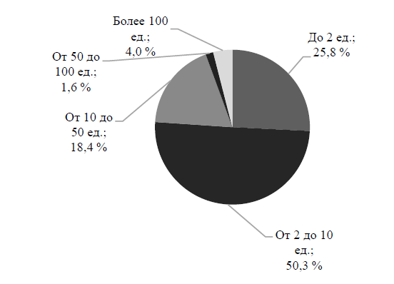 В структуре налоговых расходов, обеспечивающих положительный совокупный бюджетный эффект, налоговые расходы, не предусматривающие взаимосвязь с конкретным видом экономической деятельности, составляют более 70 %. Диаграмма распределения по численности пользователей льготы приведена на рис. 4.