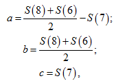 S(9) = 4a + 2b + c,