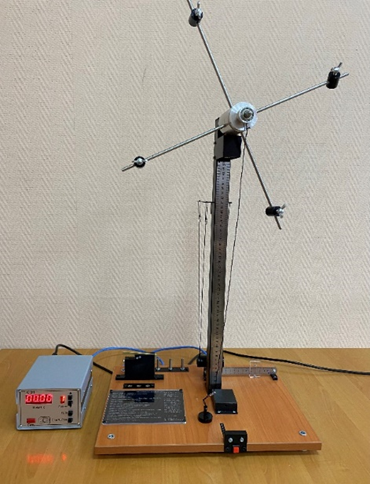 1. Построить физическую модель задания: экспериментально определить момент инерции системы четырех цилиндров, симметрично расположенных относительно оси вращения, используя узел «маятник Обербека» в модульном учебном комплексе МУК-М1.