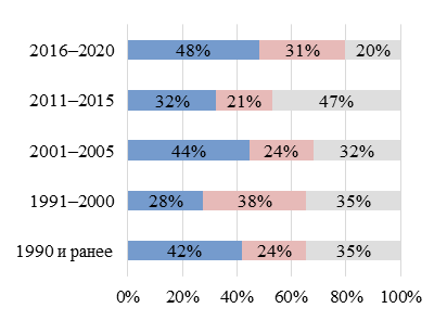 Что касается зависимости СЯЗ от характеристики компаний (рис. 5), то здесь нельзя отметить какую-то единую тенденцию, т. е. это явление не зависит от размера и возраста компаний.