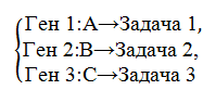 3. Ген – компонент хромосомы, который кодирует часть решения [6]. При планировании задач ген кодирует, какой сотрудник назначен для выполнения конкретной работы. В представленной выше хромосоме гены будут распределены следующим образом: