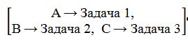 – рабочая нагрузка равномерно распределена между сотрудниками, т. е. задачи 1, 2 и 3 имеют одинаковую сложность для соответствующих сотрудников.