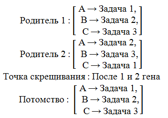 6. Кроссинговер позволяет комбинировать успешные стратегии распределения задач. В экономических отделах это может обозначать объединение фрагментов рабочих графиков из разных родительских решений. Например, одноточечный кроссинговер может выглядеть следующим образом:
