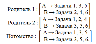 1. Популяция (совокупность) – набор потенциальных решений проблемы. В рамках рассматриваемой предметной области – набор возможных способов распределения задач между сотрудниками, например: