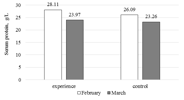 Fig. 3. Dynamics of serum protein in the Russian-Lena sturgeon hybrid