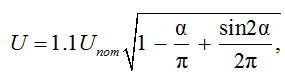 The relative effective value of the voltage on the chandeliers is conveniently considered in relation to the effective value of Umax / (at α = 0 it reaches 1.1).