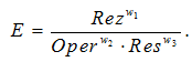 решений. Результирующее значение эффективности E получается путем мультипликативной свертки параметров и добавлением весовых коэффициентов значимости