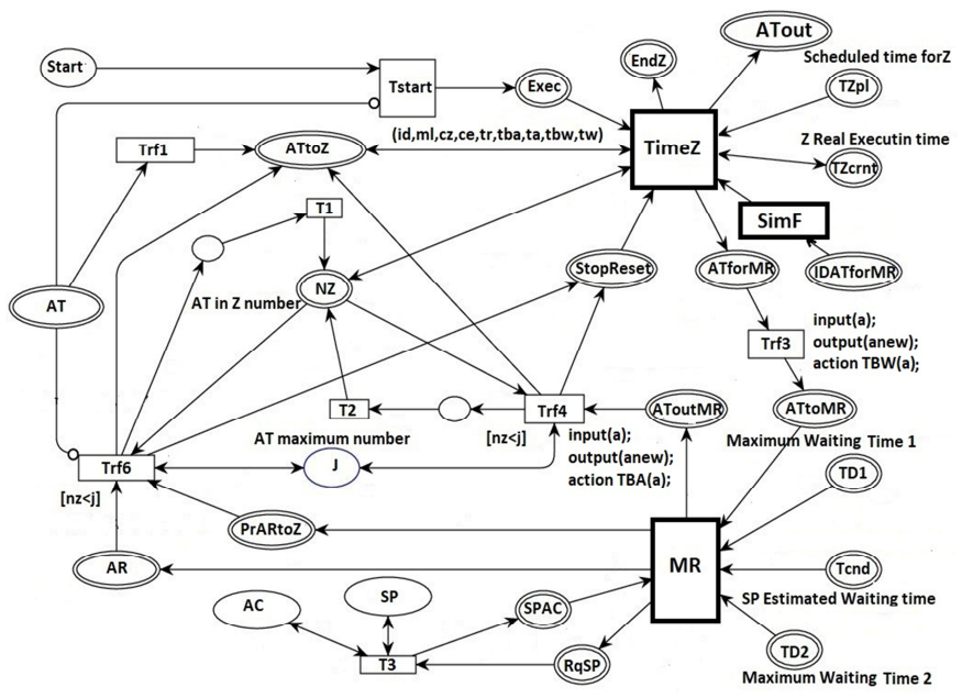 Эти функции выполняются на переходе Trf4 в модуле Z (см. рис. 4) и в модуле TimeZ. Аналогично функции TBW на переходе Trf3 (см. рис. 4) и TW в модуле MR (см. рис. 5) вычисляют суммарное время