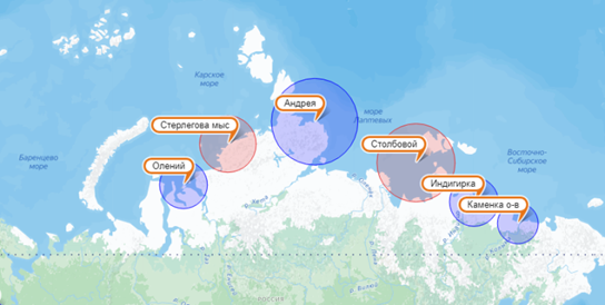 Fig. 2. Control and correction stations on the Northern Sea Route [6]