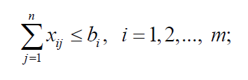 Первые m ограничений соответствуют лимитам поставок, при которых запасы товарных единиц, доступных в каждом источнике отправления,