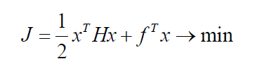 Согласно quadprog, критерий качества состоит из двух составляющих: линейной и нелинейной. Линейную компоненту определим по формуле