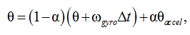 Комплементарный фильтр позволяет получить угол наклона сенсора θ путем комбинирования данных с акселерометра и гироскопа [11]: