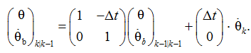 где H – модель наблюдения, отображающая истинное пространство в наблюдаемое, определяемая как H = (1 0), поскольку под измерением понимается угол, измеренный с помощью акселерометра; zk – результат измерения. Затем вычисляется матрица коэффициентов усиления Калмана: