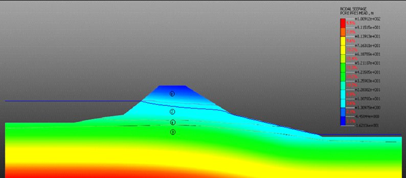 На втором этапе проведен расчет фильтрационной прочности сооружения. Учитывалось влияние различных факторов на процесс фильтрации: пористость, неоднородность среды и т. д.